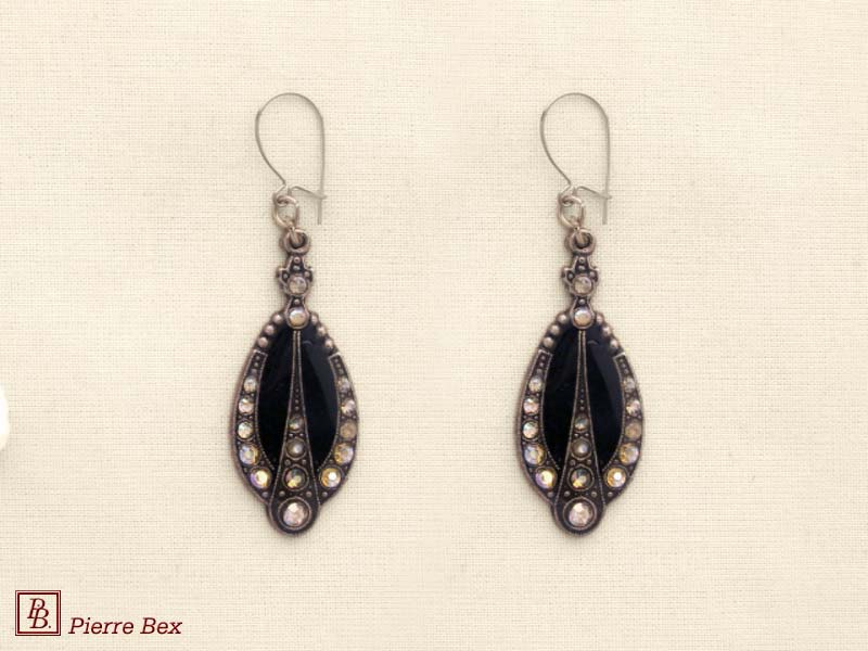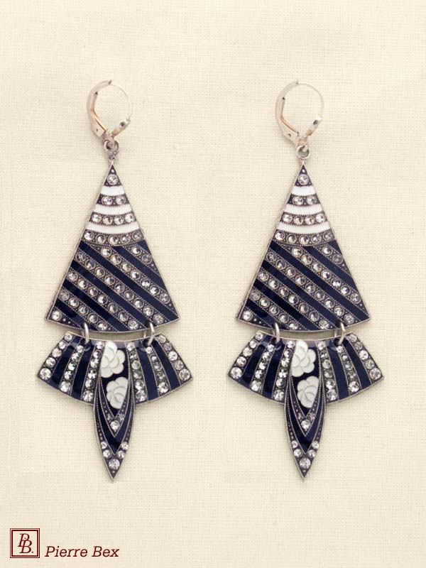 JPY 5400 送料無料ピエールベル、フランス製 Made in France by Pierre-Bex of enamel silverplated copper with crystal rhinestones, with a silver wire, and the length of these earrings is 4.5 cm. JPY 5400 |